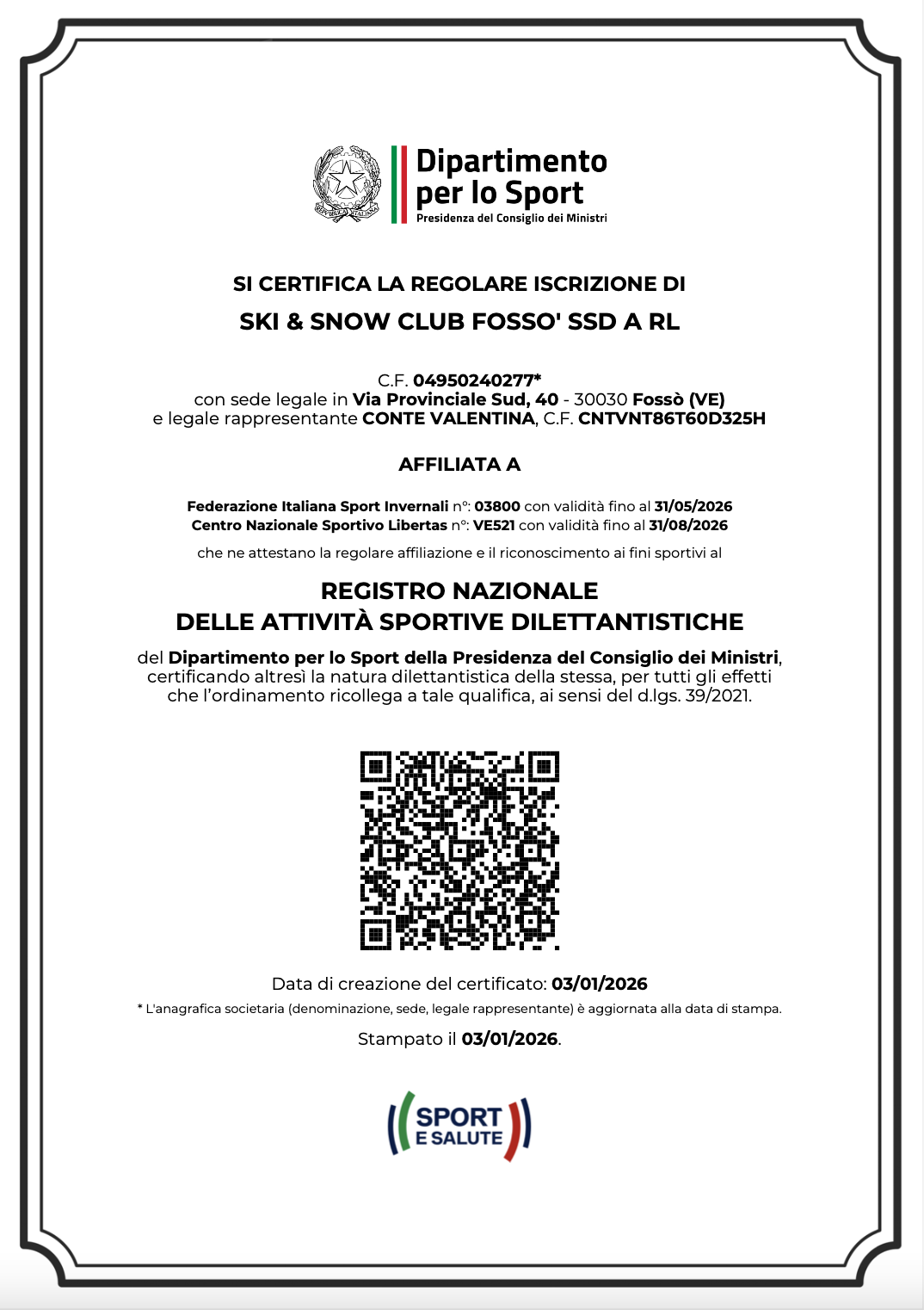 Ski Club Fossò è da anni punto di riferimento in Veneto per l’organizzazione di corsi di sci, snowboard e attività sulla neve. Partiamo da Fossò con i nostri bus gran turismo per portare centinaia di persone in pista con prezzi contenuti per permettere a tutti di praticare questa attività.