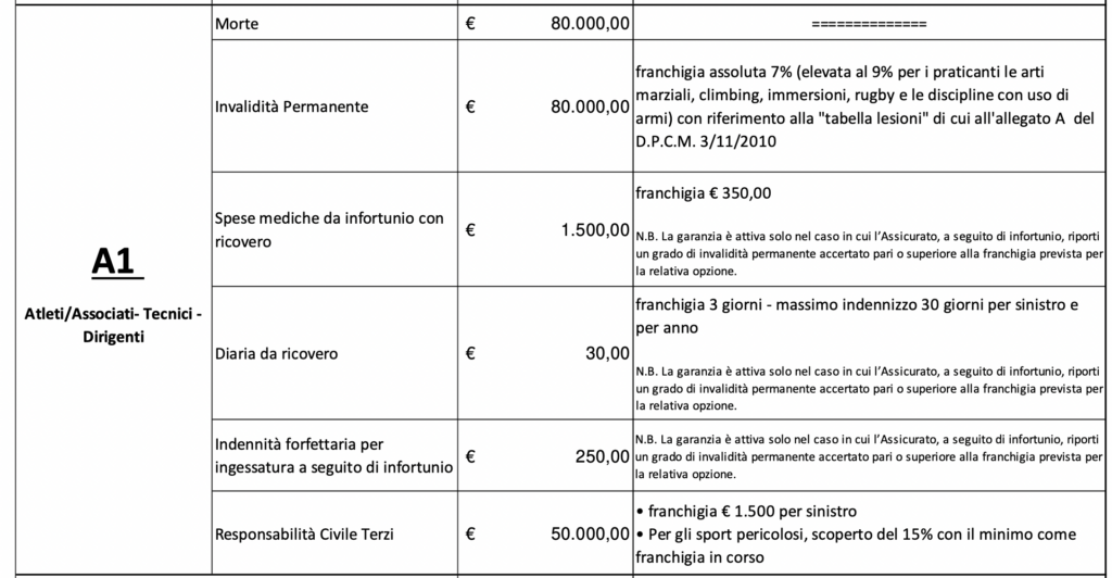Consigliamo a tutti di stipulare una polizza aggiuntiva qualora si volesse avere una copertura maggiore in caso di lesioni minori e che sia valida anche per le uscite individuali.
